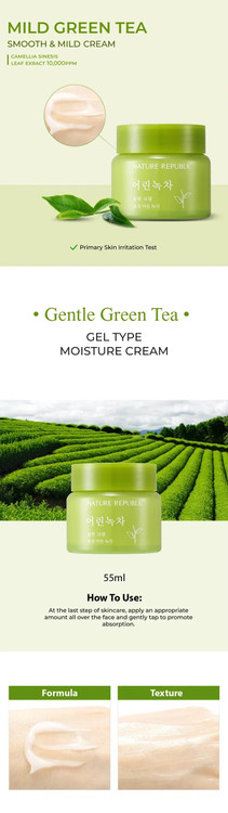 کرم ژلی ضدجوش چای سبز نیچرریپابلیک بسیار سبک حاوی ۱۰۰۰۰ ppm عصاره چای سبز برای مرطوب کردن پوست طراحی شده اند