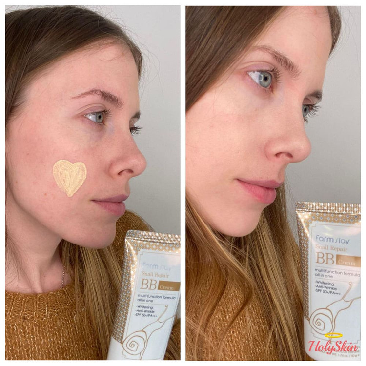🍃ترکیبات: فیلتر ترشحات حلزون، زینک اکسید، تیتانیوم دی اکسید، نیاسینامید، هیالورونیت اسید، گلیسیرین، آدونوزین، عصاره دانه جوجوبا، عصاره پاپایا، عصاره بومادران